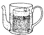Diese Kanne kann mehrfach geleert werden. Nach jedem Aufrichten ist wieder etwas darin enthalten. In der Kanne befindet sich ein zweiter verschließbarer Behälter, der am Boden ein großes Loch hat, dass dem Henkel der Kanne zugewandt ist. Beim (geheimen) Füllen öffnet man den zweiten Behälter. Dann wird er verschlossen und der Deckel auf die Kanne gesetzt. Jetzt ist die Zauberkanne vorführbereit! Nach jedem Absetzen der Kanne fließt etwas aus dem inneren Behälter in den äußeren Teil der Kanne nach, und nur dies wird jeweils ausgegossen. |